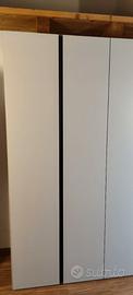 Vendesi come da annuncio armadio camera da letto 3 ante. Lunghezza 278.5 cm, altezza 240 cm profondità 62.5 cm. Colore grigio chiaro con gola in metallo colore antracite. Mobile del 2022 in perfette condizioni.