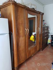 in vendita Armando per camera da letto, anni 40-50, tre ante, la centrale con generoso specchio, tutte le ante con serratura funzionante, in buone condizioni generali. misure: lunghezza 198 centimetri, altezza 204 centimetri e profondità 62 centimetri. disponibile anche cassettone, due sedie e sgabello stesso stile in alto annuncio