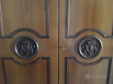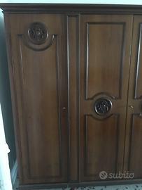 Armadio camera da letto risalente agli anni '70. Dimensioni cm 310 x 187 x 60. Uno dei due specchi interni è da sostituire. Letto abbinato in vendita in altro annuncio.