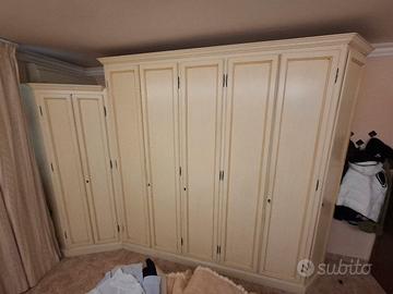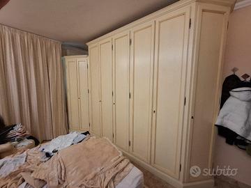 armadio camera da letto molto spazioso fatto artigianalmente color beige chiaro,tenuto molto bene,cassettiera all interno,ripiano tv,tubi appendi abiti all' interno.