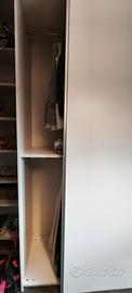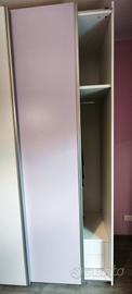 vendesi armadio come da foto, a due ante scorrevoli, con appenderia ed un ripiano lato sx e appenderia, ripiano e cassettiera lato dx. Misura: 265h; 180l; 60p. L' anta di sx ha un leggero difetto nello scorrimento a fine corsa. Il letto è in tinta armadio con rete a doghe.