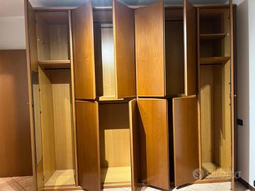 Armadiatura in legno ben denuta , suddivisa in varie parti : appendiabiti e numerosi scaffali.
