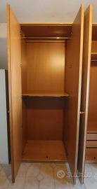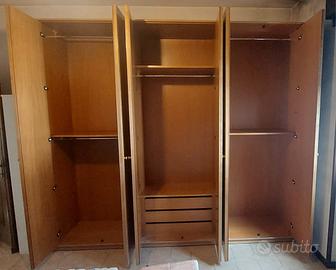 Regalo armadio anni '90 in legno lucido 3 doppie ante con cassettiera (3 casetti) interna. Misura L290xP60xH250 cm.