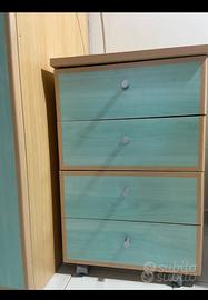 Ottimo armadio che sfrutta bene l’angolo della camera non togliendo molto spazio, molto capiente. Condizioni buone ma presenta piccoli segni di usura. Completo anche di comodino con 4 cassetti capienti. Misure in foto. Smonto e trasporto a carico del acquirente.