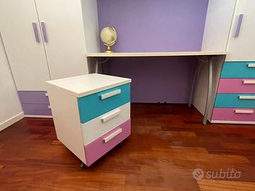 Armadio per una cameretta ( 285cm largh tot) con ponte ( 135cm ), scrivania e cassettiera con rotelle per scrivania. Volendo si potrebbe spostare la scrivania e posizionare sotto il ponte un letto di 1 piazza e 1/2 Pagamento solo in contanti al momento del ritiro