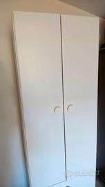 Armadio per cameretta IKEA con due ante e due cassetti. La porzione ad anta è dotata inoltre di appendiabiti, ripiano e cestello estraibile. Dimensioni Larghezza x Profondità x Altezza: 60 x 51 x 193 cm