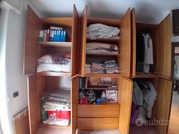 Armadio cameretta quattro stagioni. 5 spazi con ante, uno spazio con 4 cassetti e libreria.