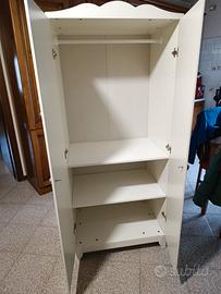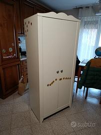 Armadio cameretta. Misure: Altezza 170 cm , larghezza 75 cm , profondità 50 cm . Già smontato. Gli adesivi si possono togliere .