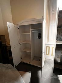 Armadio 2 ante ideale per cameretta bambino o casa in campagna. Misure 145x94x53. Presenta una piccola macchia sul davanti risolvibile con un tocco di vernice. È montato se lo ritiri così 50€ di sconto.