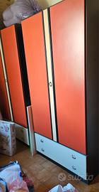 Vendo mobili per cameretta, composto da due armadi gemelli e un armadio più un armadio a giorno ed l'elemento ponte che si può mettere fra i due armadi, misure come in foto, smontaggio a carico dell'acquirente. Ritiro a Mornico Losana.