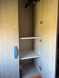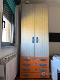 Vendi armadio cameretta ragazzi 2 ante e 4 cassetti con ripiani rimovibili, in buone condizioni.H 246 L93 profondità 55.smontaggio e trasporto a carico dell’acquirente
