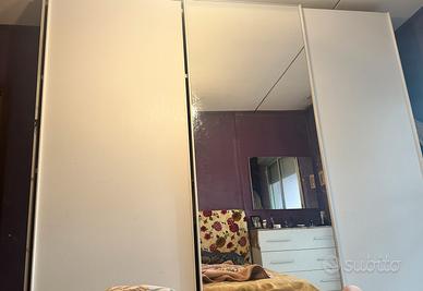 Vendo armadio per camera da letto con 3 ante scorrevoli, di cui una con specchio centrale. Armadio molto capiente e funzionale, ideale per camera matrimoniale o cameretta. Le porte scorrevoli sono pratiche e salvaspazio. 📏 Altezza: 270 cm Colore bianco, struttura solida. Condizioni buone: usato ma tenuto bene. Vendo per cambio arredamento. 📍 Ritiro a Locate di Triulzi (MI) Smontaggio e trasporto a carico dell’acquirente. Disponibile per visione. Prezzo trattabile.