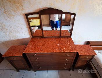 vendo armadio cassettiera e comodini, con marmo rosso antichizzato. Rarissimi pezzi di antiquariato. Restaurato da poco.