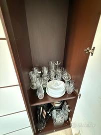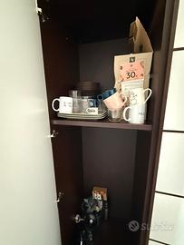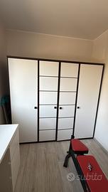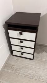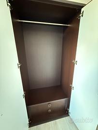 Vendo armadio capiente in stile moderno, colore legno scuro e ante bianche, completo di cassettiera coordinata.