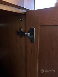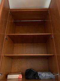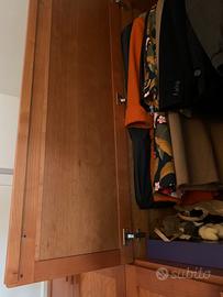 Bellissimo armadio 4 stagio di legno di castagno fatto artigianalmente da un falegname, diviso in 6 scomparti. Due sono con mensole, tre scomparti con appendiabiti e uno scomparto con cassettiera. Stile moderno e pulito ma aspetto caldo del legno. Puattroppo svendo per trasloco.