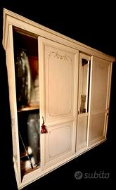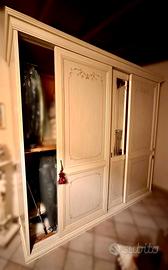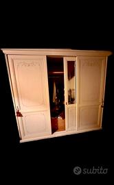 Bellissimo e imponente armadio in stile classico a tre ante scorrevoli con specchio lavorato centralmente.
