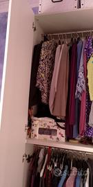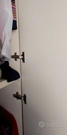Vendo causa trasferimento,Armadio a due ante di 90 cm, con laterali e maniglione di apertura in olmo chiaro,con una mensola interna,colore bianco laccato lucido,.misure 90 cm x 60 /h 2,46