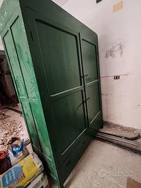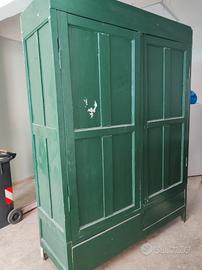 armadio in legno massello anni 40, da sistemare verniciati in verde. Misure 65x135x230