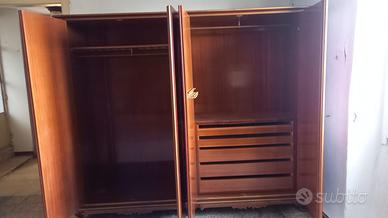 Armadio cinese originale, anni 50, lacca rossa, decorazioni oro in rilievo, quattro ante. Ottimamente conservato, ha un difetto sul lato sinistro, visibile nella foto allegata. Lunghezza 230 cm, altezza 193 cm e profondità 60 cm.