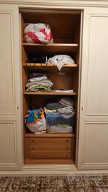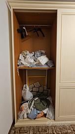 Vendo capiente armadio in stile classico, color crema/avorio delicato, perfetto per arredare camere da letto. Il mobile è caratterizzato da una struttura solida e finiture curate, con eleganti cornici decorative superiori e ante pantografate.