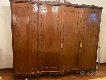 Vendo armadio guardaroba a quattro ante di metà novecento. Mobile di pregio, solido e in perfette condizioni. All’interno presenta ampi spazi con ripiani e aste appendiabiti originali. Misure: 2,32X2,01X60 Ritiro a mano presso abitazione