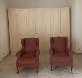 Armadio Granducato sette ante, molto capiente. All’interno 3 cassetti, uno specchio, molti ripiani e vari appendiabiti, con comodo sistema sali e scendi (vedi foto). Finitura elegante e nello stesso tempo contemporanea. Le misure sono: altezza 260cm , profondità 60 cm, larghezza 350 cm.. Smontaggio abbastanza semplice e ritiro agevolato in quanto posizionato al piano terra. Prezzo estremamente vantaggioso e che ho ulteriormente ribassato ( anche rispetto a prodotti simili su Subito) Le poltrone, foderate in pelle, le regalo.