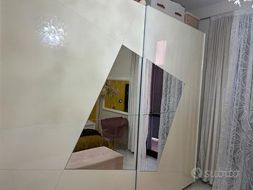 Armadio bianco con specchio centrale ,ante scorrevoli .Misura cm 2,74x62x2,45 h , inclusi 2 ripiani,4 tubi appendiabiti Como 2 comodini