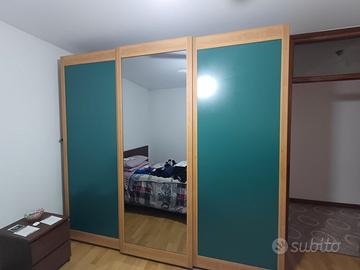 Causa trasloco vendesi: Armadio 3 ante scorrevoli con specchio centrale cm H 250 x P 64 x L 256 Un comò con 4 ampi cassetti e 2 comodini, dotati di 2 cassetti ciascuno.