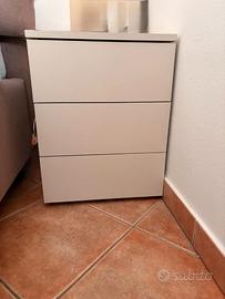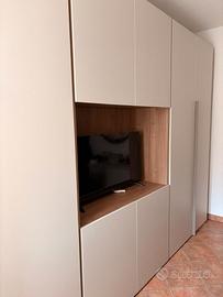 Vendo camera da letto completa in ottime condizioni composta da: - Armadio modulare con vano per TV centrale - Cassettiera interna a 3 cassetti - Ripiani e inserti aggiuntivi (molto capiente) - Comò 3 cassetti - 2 comodini 3 cassetti Finitura moderna color chiaro, si adatta facilmente a qualsiasi ambiente. Misure principali: - Armadio grande e molto capiente (con accessori interni inclusi) - Comò: L 123,9 - P54,7 - H80,2 - Comodini: L 41,3 - P44,7 - H54 Condizioni: usata ma ben tenuta, nessun difetto strutturale. 💰 Prezzo: 900€ trattabili 📍 Zona: Carpi Smontaggio e trasporto a carico dell’acquirente. Contattami per info o altre foto.