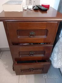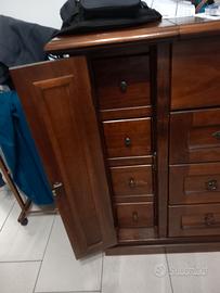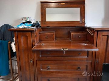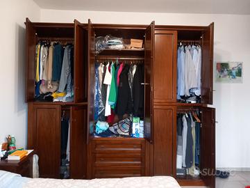 Vendo armadio in legno pieno (h 250 cm, profondità 57 cm e larghezza286 cm) comò con cassetti e cassettoni e vano nascosto ( h 100 cm, profondità 57 cm, larghezza 144 cm) e 2 comodini con 3 cassetti ( h 70 cm , profondità 40 cm, larghezza 52 cm) manca qualche vite nell ante dell armadio e due anelli nel comò SMONTAGGIO A CARICO DELL ACQUIRENTE