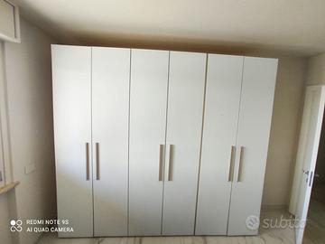 Vendo un armadio a sei ante, molto capiente, un comò con 3 cassetti e due comodini, colore bianco, in ottime condizioni. Ritiro e trasporto a cura dell'aquirente. Il prezzo lo concordiamo.