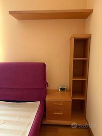 Vendo anche SEPARATAMENTE armadio, comodino con libreria, mensole e due letti singoli. Legno di betulla in ottime condizioni senza graffi o segni di usura. Prezzo trattabile comprensivo di tutto, smontaggio a carico dell’acquirente. Misure armadio: -lunghezza 326 senza le mensoline tonde sul lato dx (eventualmente da coprire con uno specchio o qualcosa perché ci saranno i buchi delle mensole), con mensole e quindi come da foto 354 -profondità 62 -altezza 262 (a soffitto) Misure mensole 120x32 Set comodino: -altezza 140 -larghezza 66 -profondità 45 (comodino), 32 (libreria)