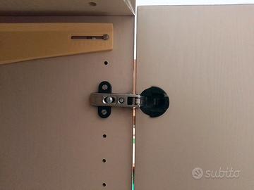 Vendesi armadio composto da tre pezzi: armadio a due ante, libreria, armadio a un anta + 6 relativi cassetti, di colore nocciola, in legno di frassino; misure mt. 2,05 larghezza x mt. 1,67 altezza x cm. 58 profondità.