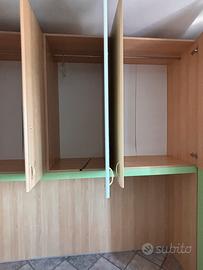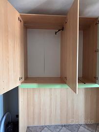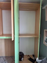 Armadio componibile legno chiaro + verde menta.