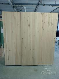 Le 3 ante saranno costruite a telaio in abete con nido d’ape internamente e rivestito ambo i lati con cartelle in massello da 6 mm con venatura ORIZZONTALE in modo che non si muova nel tempo in cui la sx scorrerà a dx, la dx a sx e la centrale a dx completo di raddrizzanti in modo da poter registrarle in caso di bisogno, interno in abete nuovo. Maniglia ad incasso traforata come foto. Avranno uno spessore da 32 mm le ante completo di kit BORTOLUZZI con sistema ammortizzato magnetico completo di agganci con sgancio rapido superiore e inferiore su cui scorrerà direttamente sul binario. Completo di piedini livellatori per mettere a bolla il tutto (staccato dal muro superiore in quanto servono 10 cm di poter sormontare sopra il pannello con anta e ferramenta). Il tutto spazzolato in modo a risaltare le venature, completo di finitura oliata su rovere e su abete. il tutto spazzolato con finitura. mobile è già stato venduto e costruito su commissione non teniamo magazzino ma nessun problema per riprodurlo. ASTENERSI RIVENDITORI COMMERCIANTI.