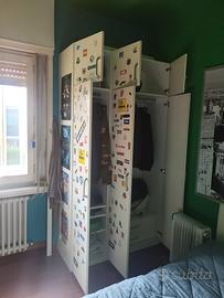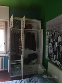 Vendo armadio bianco con adesivi ideale per cameretta ragazzi ma si possono togliere con ripiani e cassetti 240 altezza 130 larghezza 52 cm profondità