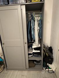 Vendo armadio Ikea H 200cm L 118 cm P 55cm ante scorrevoli colore grigio, buono stato Roma zona Tuscolana Lucio sestio appartamento al 7 piano con ascensore, smontaggio a cura dell’acquirente