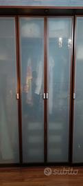 armadio legno con ante vetro azzurrate composto da moduli singoli assemblabili,