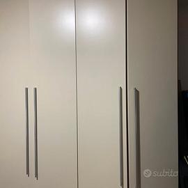 Vendo per cambio destinazione stanza, armadio 6 ante, struttura ciliegio, ante panna, componibile con disposizione elementi a piacere, composto da cabina armadio, 3 ante + terminale. Lunghezza come da foto 2,92 mt. altezza struttura 2,52 mt. misure degli elementi nel disegno in bozza (due cerniere da sistemare, il resto è integro). Ritiro e trasporto a cura dell’acquirente