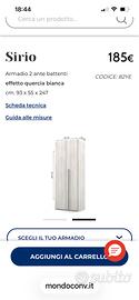 Cabina armadio piu 2 ante, misure come in foto. Come nuovo. Volendo potete prenderlo già smontato. Primo piano ostia lido.