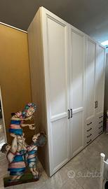 Armadio da L. 193 H. 256 Prof. 60 cm composto da n. 2 moduli. Il primo è composto da cassettiera n. 4 cassetti esterni e n. 2 ante, dotato internamente di n. 1 tubo appendiabiti. Il secondo è composto da n. 2 ante, dotato internamente di n. 2 tubo appendiabiti e n. 1 ripiano. Colore struttura Larice, colore frontale frassino Bianco.