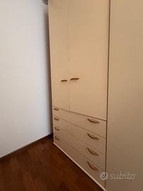 Armadio con cassettiera misure cm 90 x cm 227 altezza 1.60 colore bianco. Visibile montato per un paio di giorni poi verrà smontato.