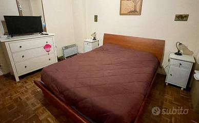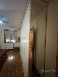 Armadio modulare con 6 ante battenti principali divise in due ordini (superiore e inferiore), per un totale di 12 pannelli visibili, con specchio. Due comodini e un Comò settimino cassettiera (il tutto di colore bianco). Affare Armadio/comodini/settimino. In regalo Letto matrimoniale.