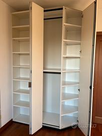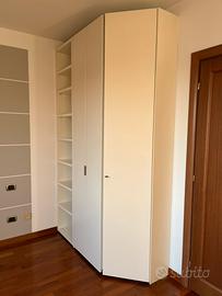 Armadio con libreria alla sinistra, porta centrale a libro,e terminale a 45 gradi a destra ,larghezza cm.160 ,profondità cm.60 ,altezza cm.2.60 .