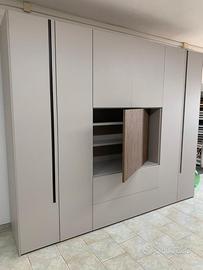 ARMADIO LARGHEZZA 304 CM, ALTEZZA 254 CM E PROFONDITA' 60 CM, ANTE E CASSETTI SPESSORE 2,5 CM , FIANCHI E RIPIANI SPESSORE 3 CM, ANTE AMMORTIZZATE E CASSETTI CON APERTURA PUSH PULL, VANO PORTA TV GIREVOLE CON RETRO CONTENITIVO. VENDO ESCLUSIVAMENTE PER RINNOVO ESPOSIZIONE, ARMADIO DI OTTIMA QUALITA' E POSSIBILITA' DI VISIONARE IN NEGOZIO.