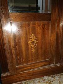 Vendesi armadio primo novecento, con specchiera. Composto da tre scomparti: un corpo centrale a specchio intero, più laterali decorati con tarsia lignea. Ha un capitello curvo con volute ioniche.