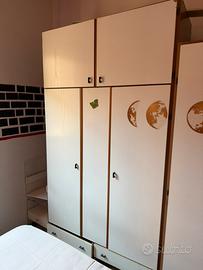 Armadio grande con specchio – economico Vendo armadio grande colore bianco con specchio e cassetti. Mobile datato ma ancora utilizzabile, capiente e robusto. Presenta alcuni segni di usura estetica dovuti al tempo (come da foto), ma le ante e i cassetti funzionano regolarmente. Ideale per seconda casa, casa vacanze, cantina oppure per chi cerca una soluzione economica. Ritiro a carico dell’acquirente. Disponibile subito.