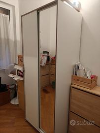 armadio bianco con anta a specchio, apertura scorrevole, due ante. misure armadio: altezza 202 lunghezza 80 profondità 60 ritiro direttamente presso venditore