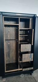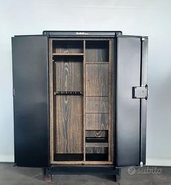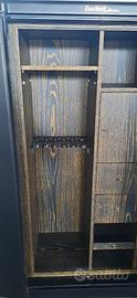 All'interno mobile in Rovere colore nero con fiamma color oro, composto da una sezione portafucili (10 fucili) e una sezione con ripiani a vista e cassetti.