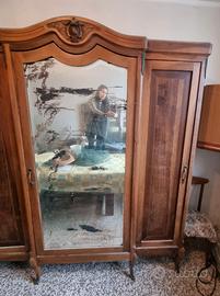 Armadio vintage da restaurare. Formato da 3 parti, con specchio centrale. Misure: 197x55x225 Ritiro a carico dell'acquirente in provincia di Cremona